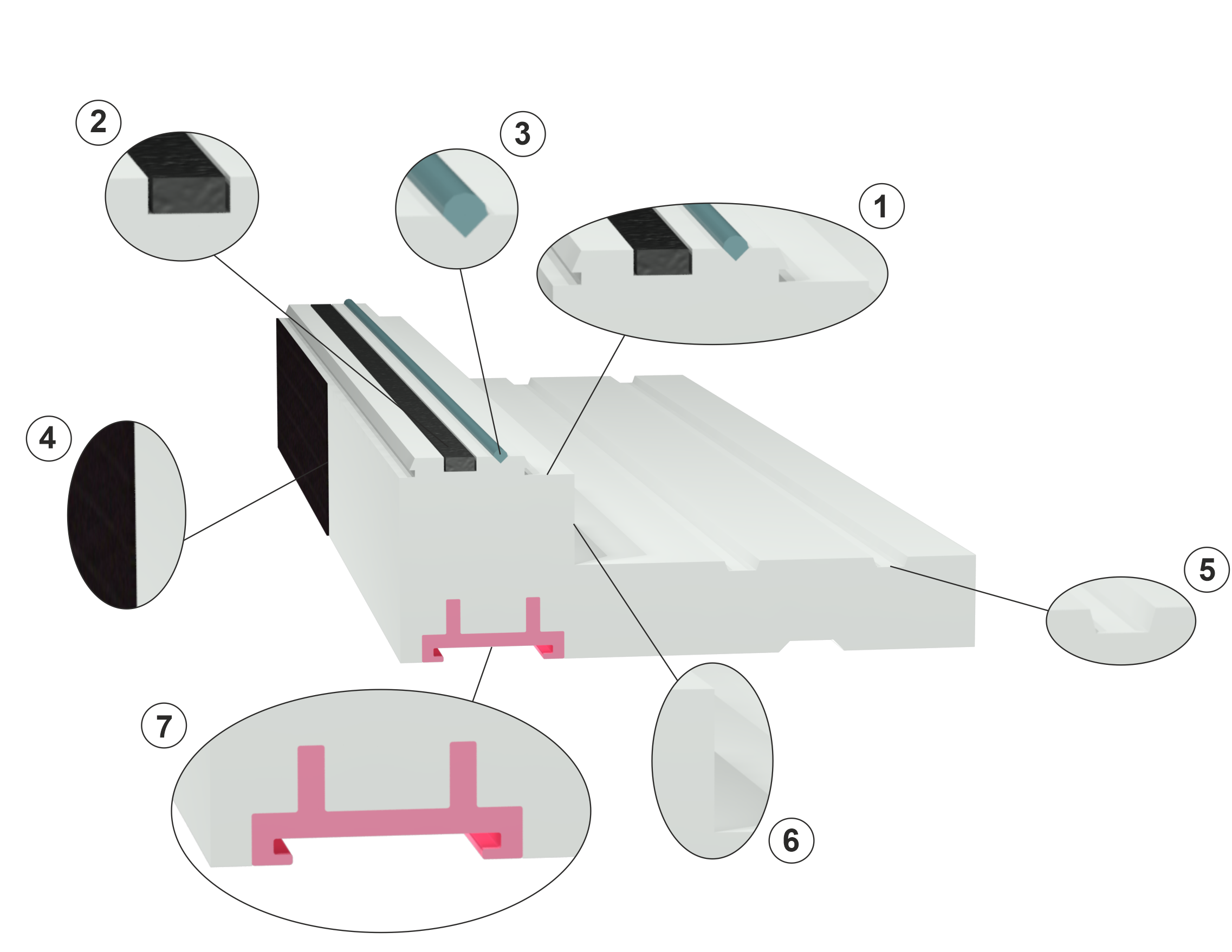 - Wbudowana dolna listwa zaczepowa, do której montowane są kotwy montażowe. Kotwy montażowe o grubości 1,5 mm są sprzedawane w komplecie w ilości 3 szt. na element. Listwa zaczepowa dodatkowo usztywnia całość.